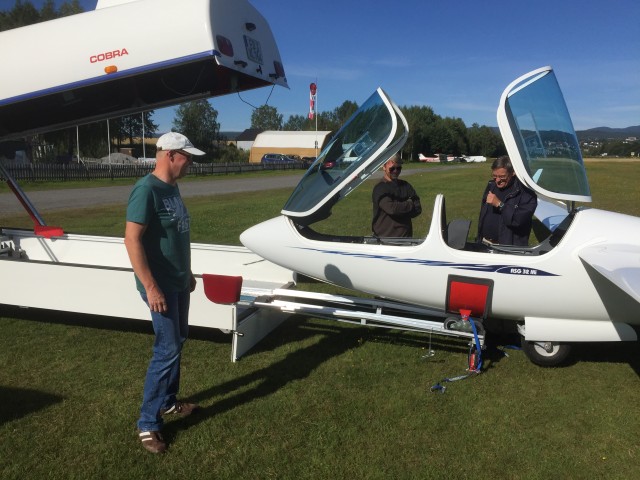 Storfint besøk på HokksundFredag 13. august hadde vi storfint besøk på Hokksund. Direktør Ulrich Kremer fra seilflyfabrikken Alexander Schleicher i Tyskland kom med sin nyeste kreasjon, den høyverdige to-seteren ASG 32 Mi. Alexander Schleicher er den eldste og kan den mest betydningsfulle fabrikken som lager seilfly. ASG 32 Mi har 20 meter vingespenn og med en ytelse som et glidetall langt over 50. Vi var 8 medlemmer som fikk prøvefly dette flyet (Hans, MortenS, KjetilG, Jørund, Jon, IngarB, Arne Martin og Øyvind). I tillegg tok Arne Martin og Øyvind ferryen over til Notodden hvor medlemmer av Sandefjord seilflyklubb og Os seilflyklubb fikk anledning til å prøvefly dagen etter.