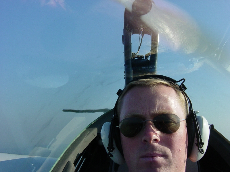 I farta med øreklokker og propell